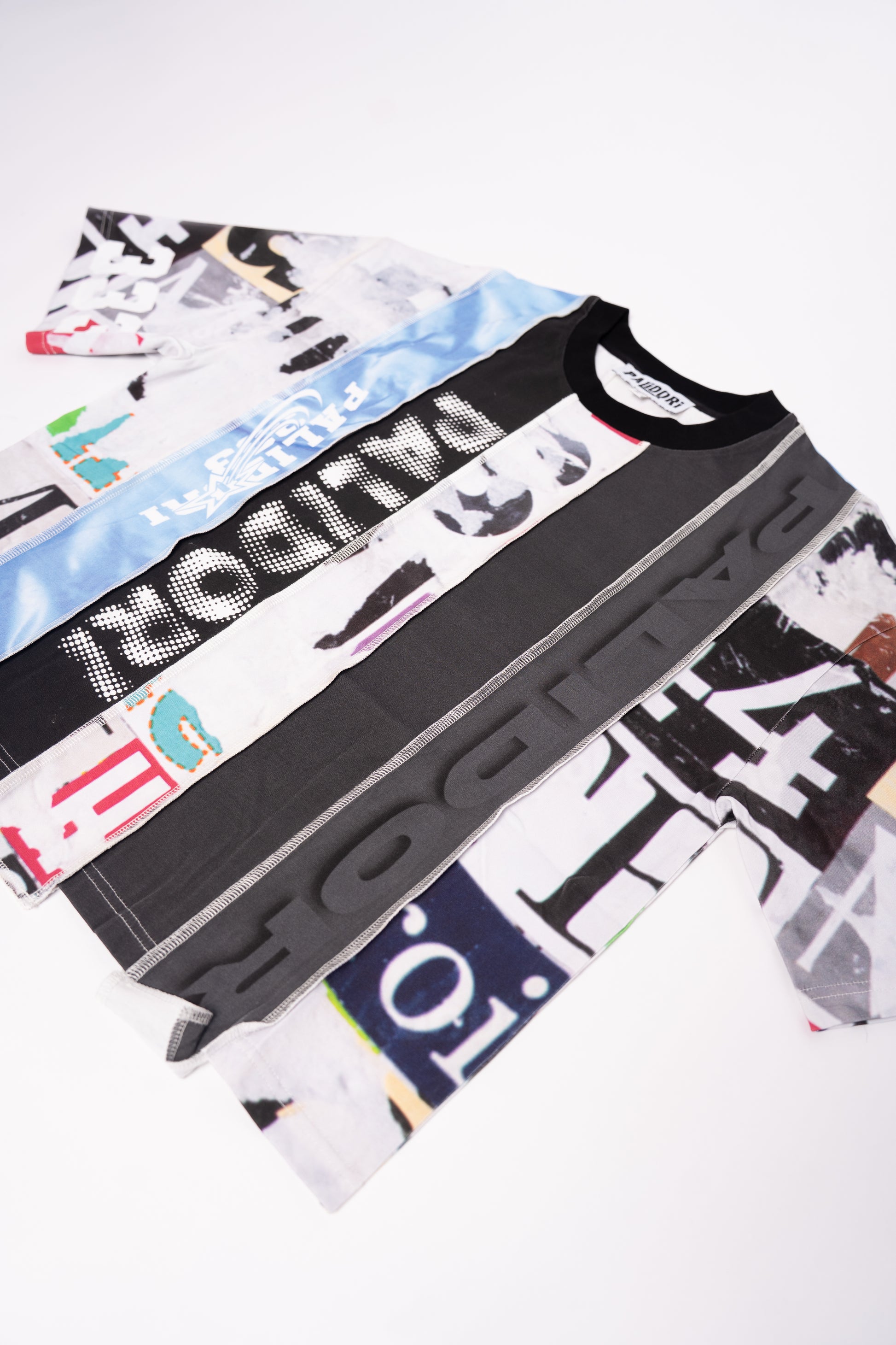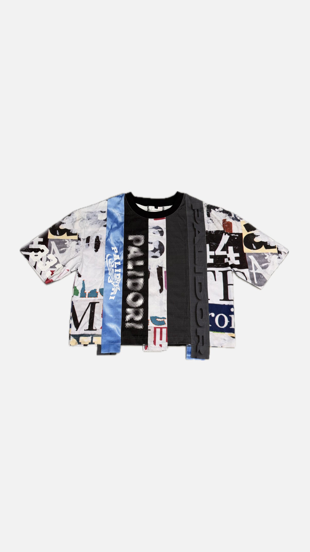 Expertly crafted from premium cotton fabrics, this multi-panel t-shirt boasts a boxy crop fit, drop shoulder design, and uneven raw edges for ultimate comfort and style.